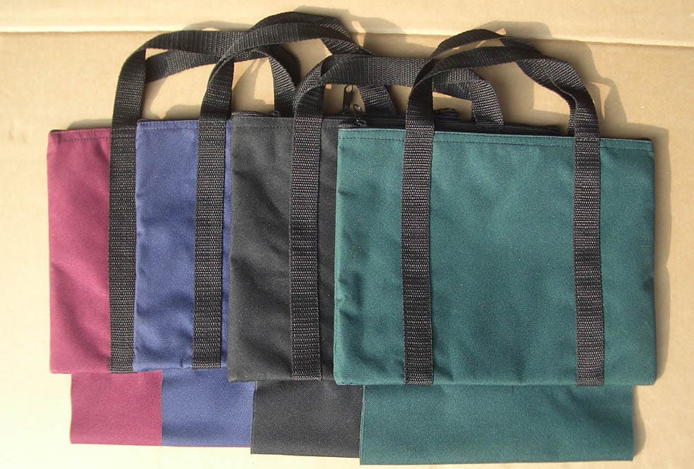 Bolsa con zipper para piezas de ajedrez con asa de 12″ x 9″ (lona 30.48cm X 22.86cm ) y portatablero debajo de la bolsa para tablero de ajedrez enrollable.